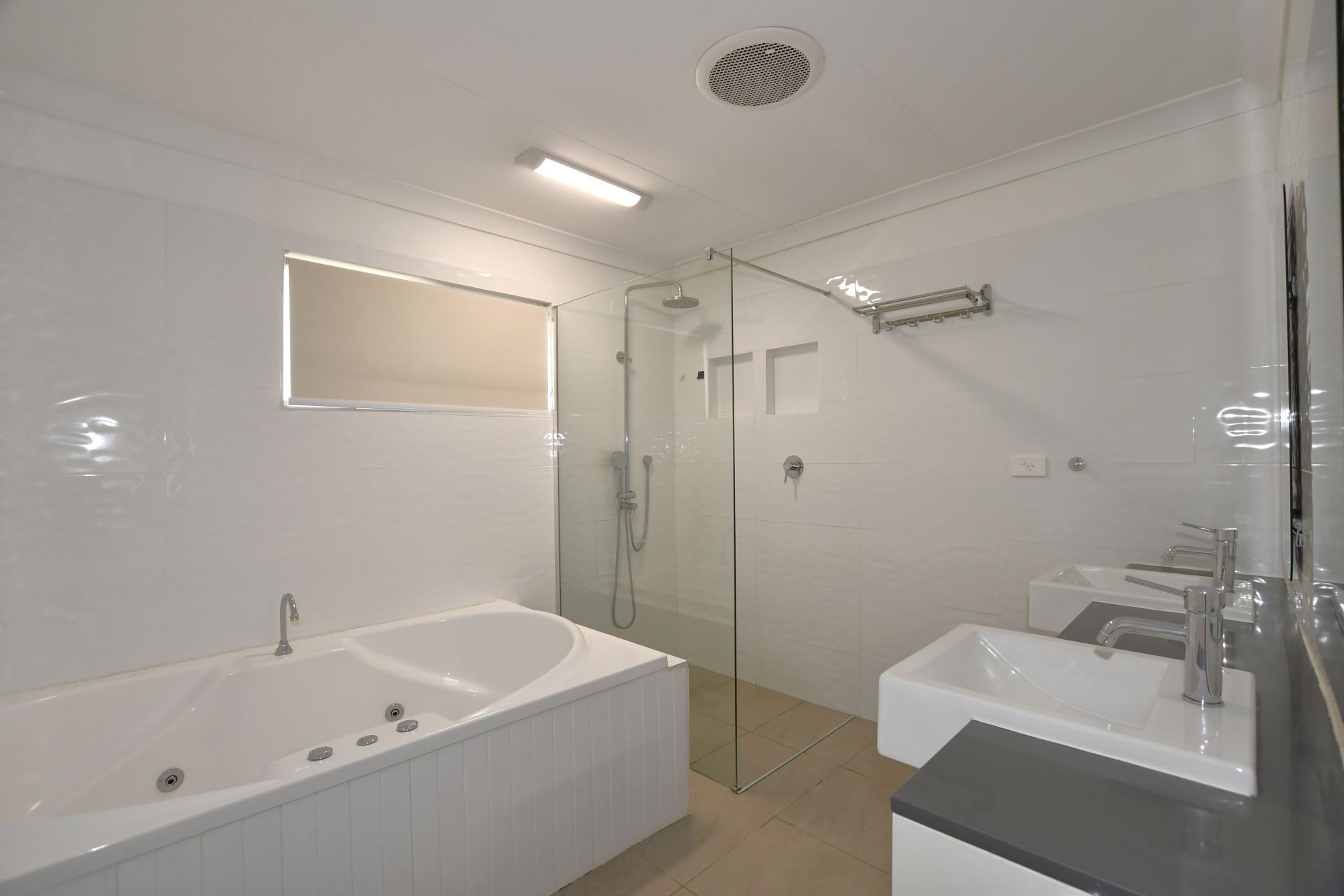 • The main bathroom has both a relaxing spa tub and walk in shower, plus a His and Her double vanity, accompanied by a separate toilet