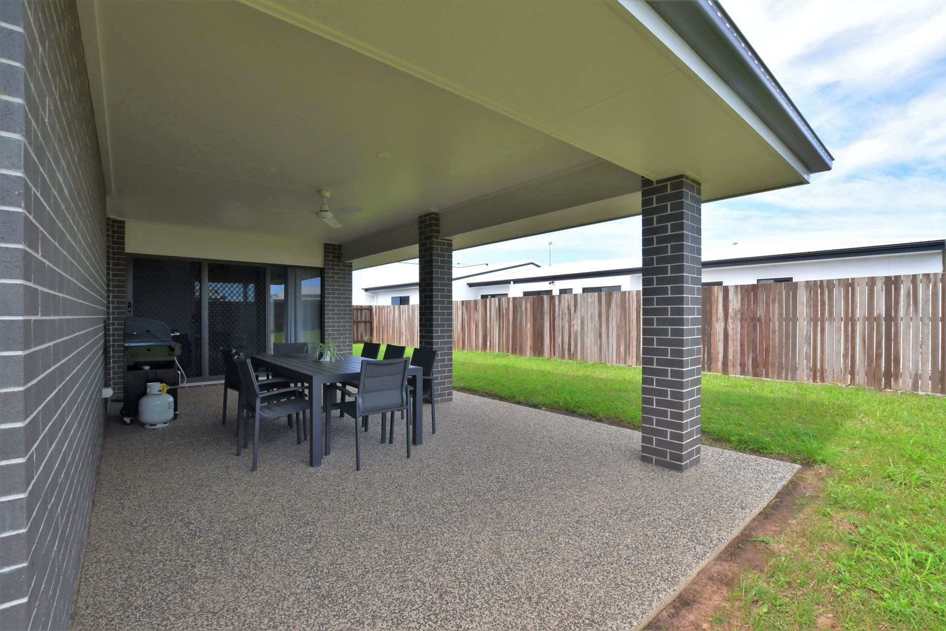 • Fenced backyard with covered area and clothesline