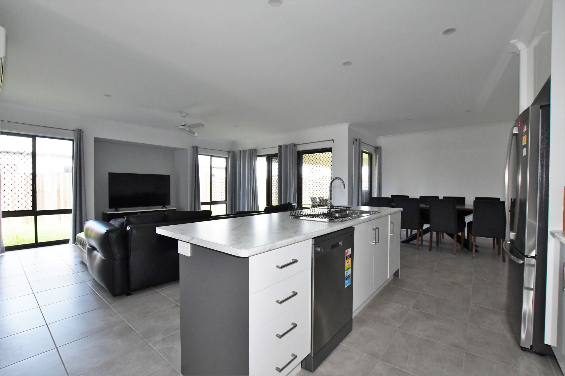 • Nicely spaced open living, dining and kitchen area