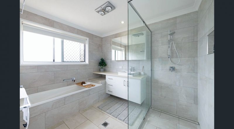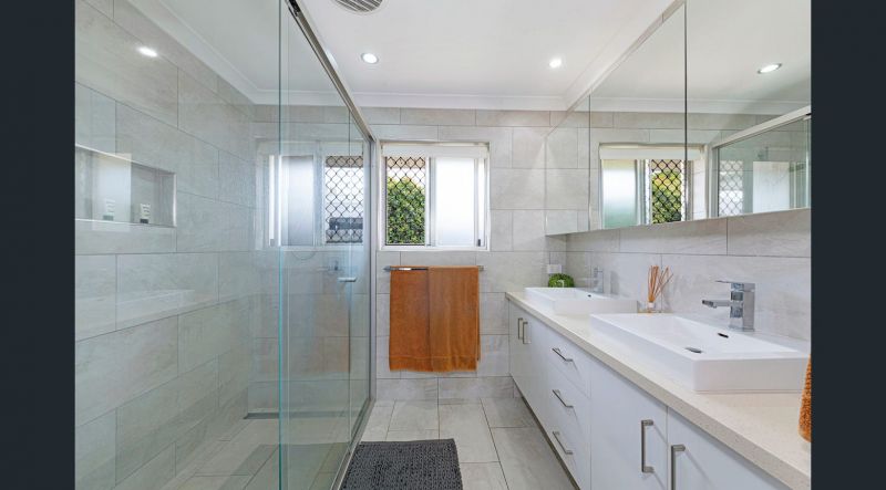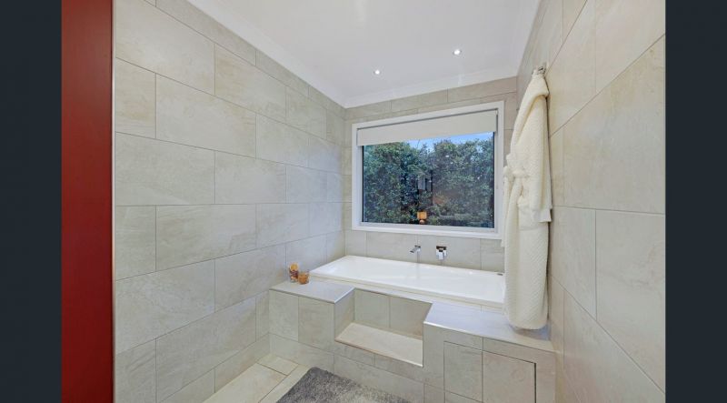 There are 5 bedrooms above your average size, with built-ins and fans. The opulent master bedroom offers a walk-in robe, an ensuite with twin vanities, a double walk-in shower, and a separate feature spa bath. The home layout is very practical, with three bedrooms adjoining a central multipurpose room which could be used as a second living room or a kid's rumpus room.
