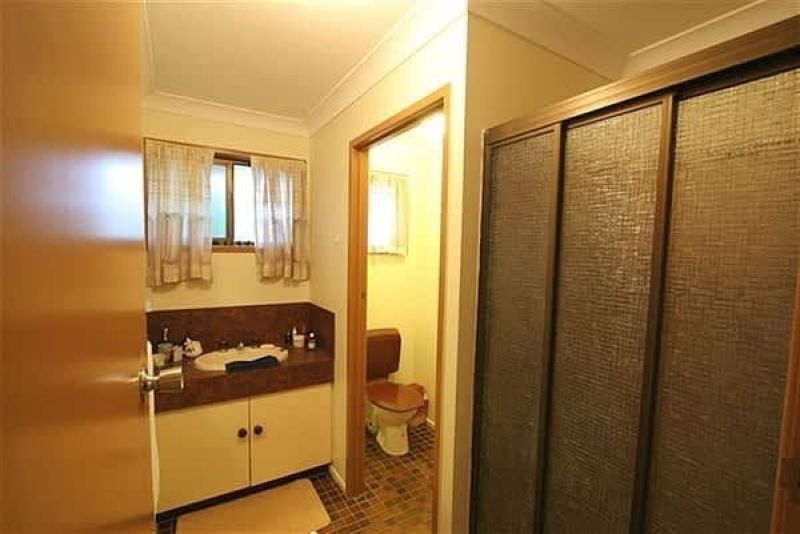 - Bathroom has shower, vanity and separate toilet.