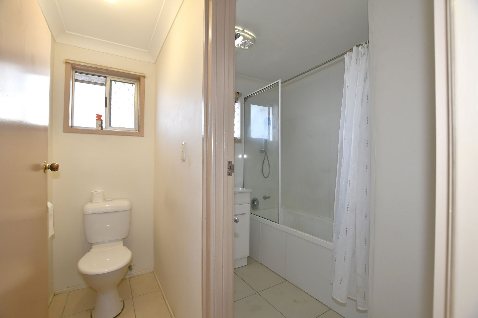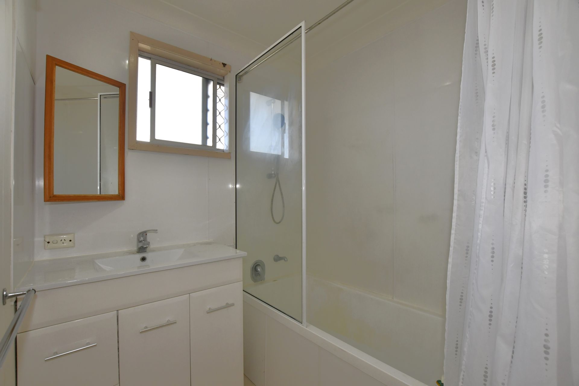 • The bathroom offers includes large shower over bath and vanity, accompanied by a separate toilet