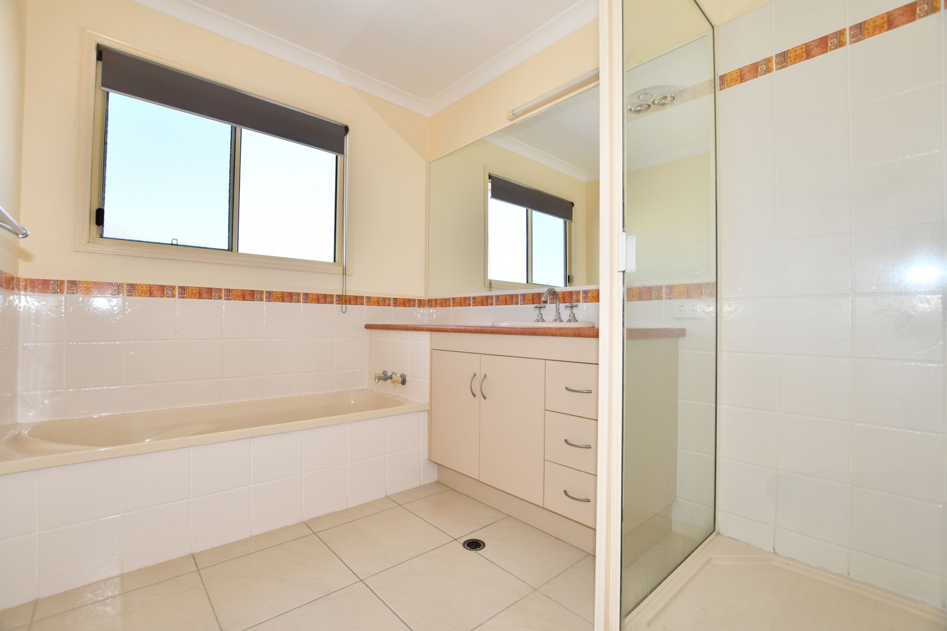 - Main bathroom has bath, shower and separate toilet.