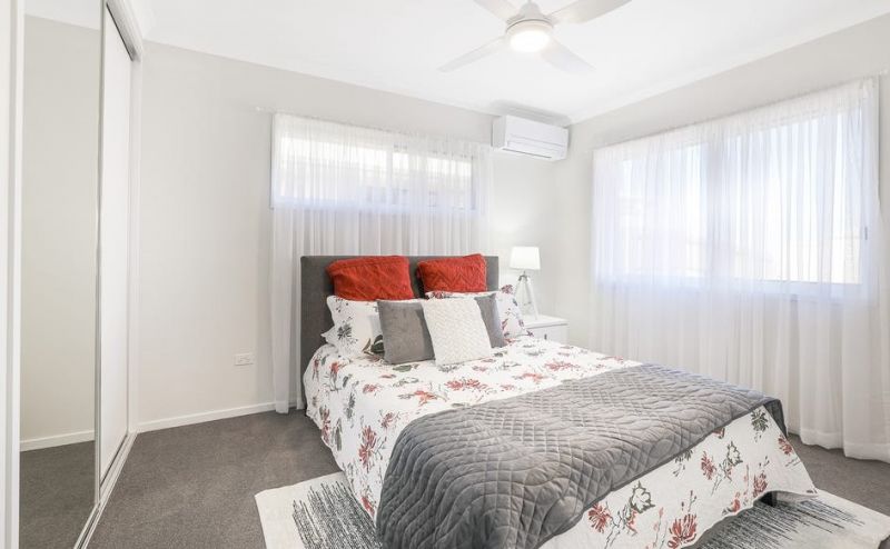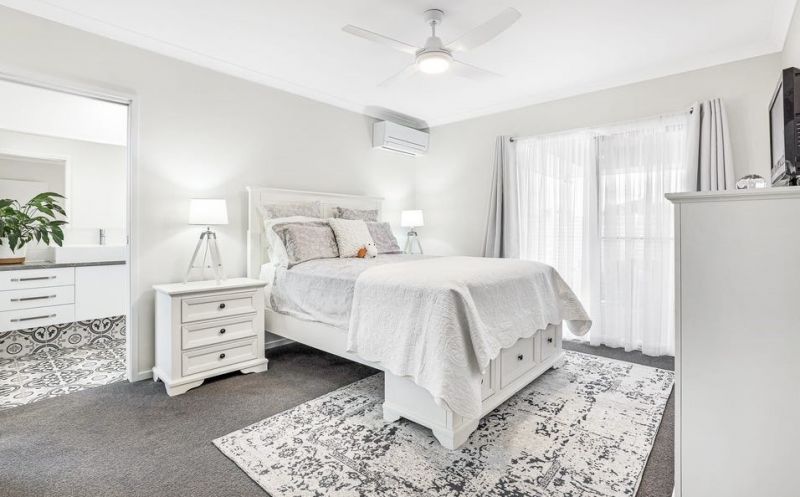 The air-conditioned master suite offers a large walk-in-robe and a stunning ensuite bathroom, a perfect place for relaxation.