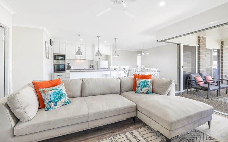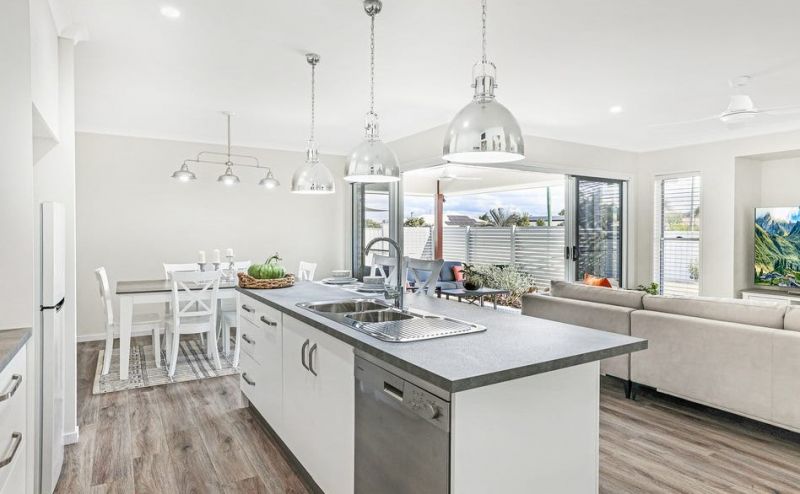 The home has an airy open plan layout with the kitchen, dining and family room/living area flowing out to a big under roof outdoor entertaining space overlooking the nicely landscaped gardens. Additionally, there are 3 other outdoor living spaces ensuring the whole family can enjoy their own space.