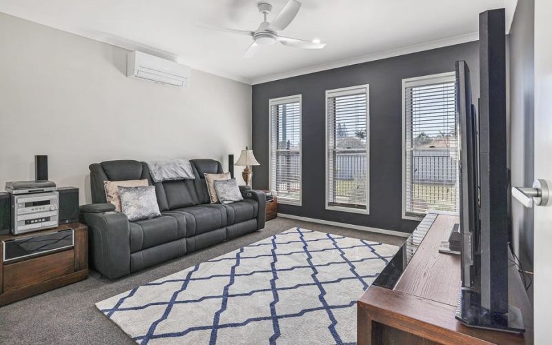 The air-conditioned media room is located at the front of the home and can be used as a huge 4th bedroom if desired. The main bathroom to service bedrooms 2 and 3 is complete with a separate shower and bath, while the toilet is separate to the bathroom to ensure it can be used in privacy while the bathroom is occupied. Bedrooms 2 and 3 have ceiling fans and built-in robes, bedroom 2 is also air-conditioned.