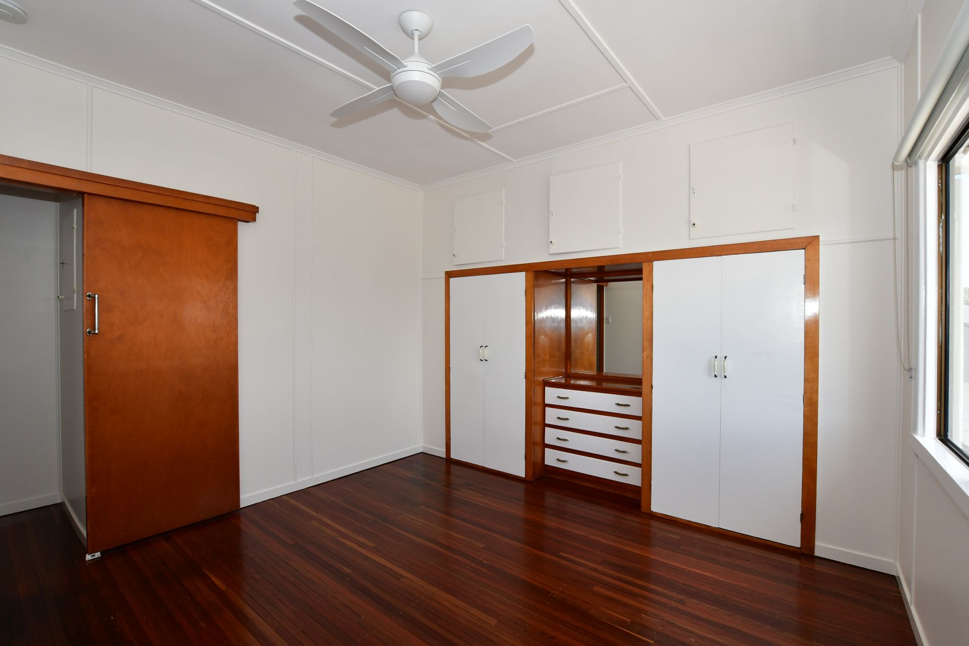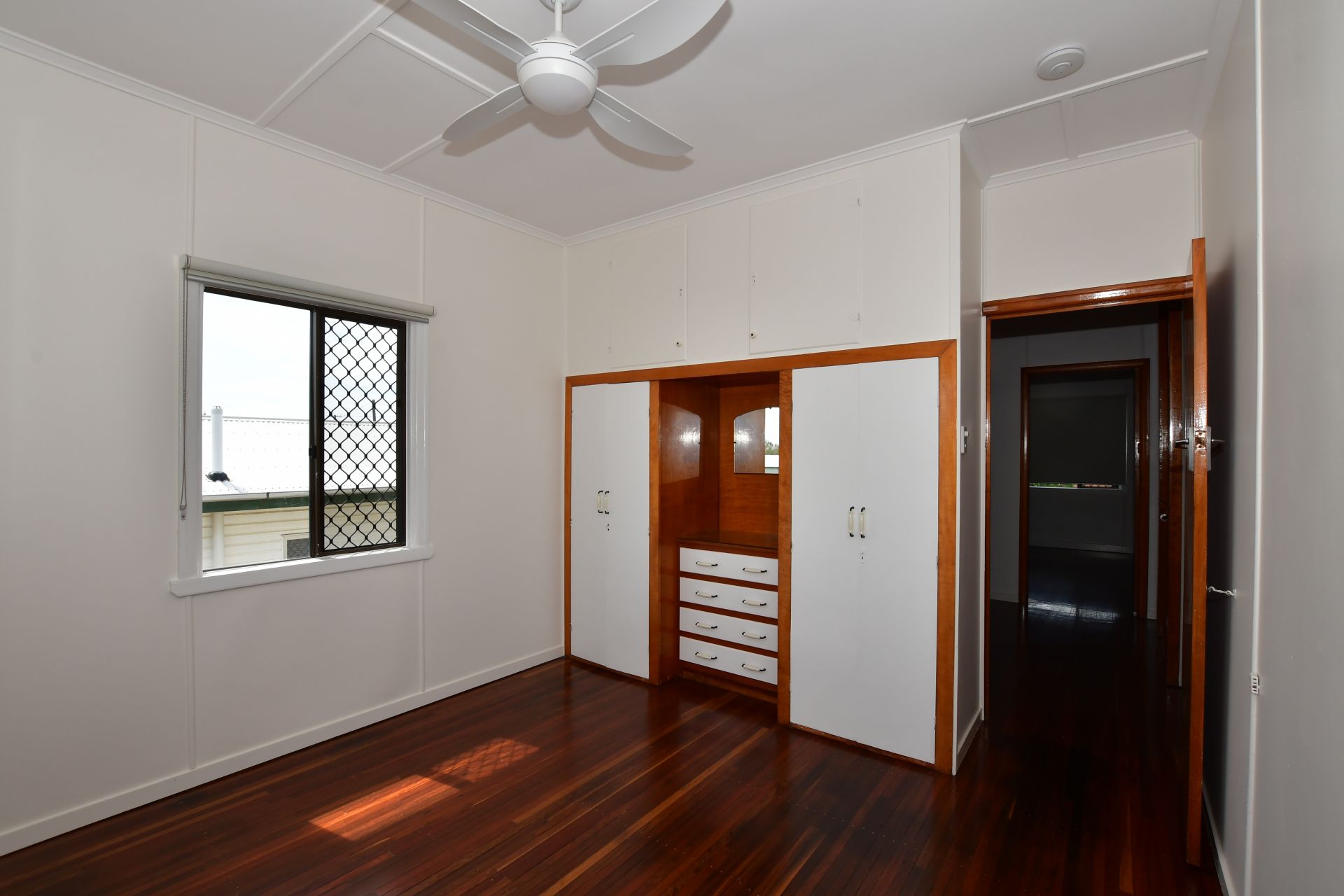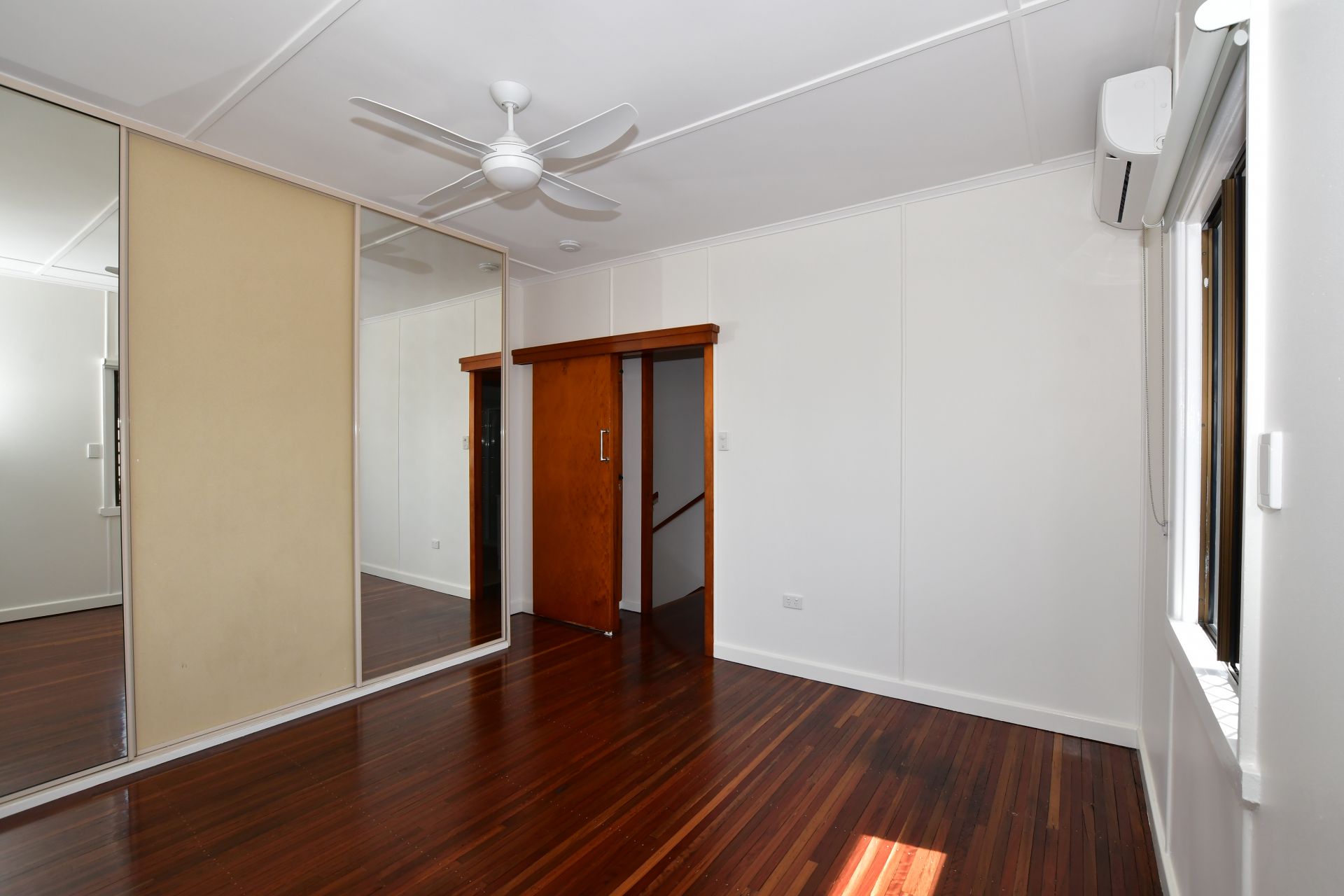 - Three upstairs bedrooms, all with build-ins and ceiling fans, air conditioned master bedroom
