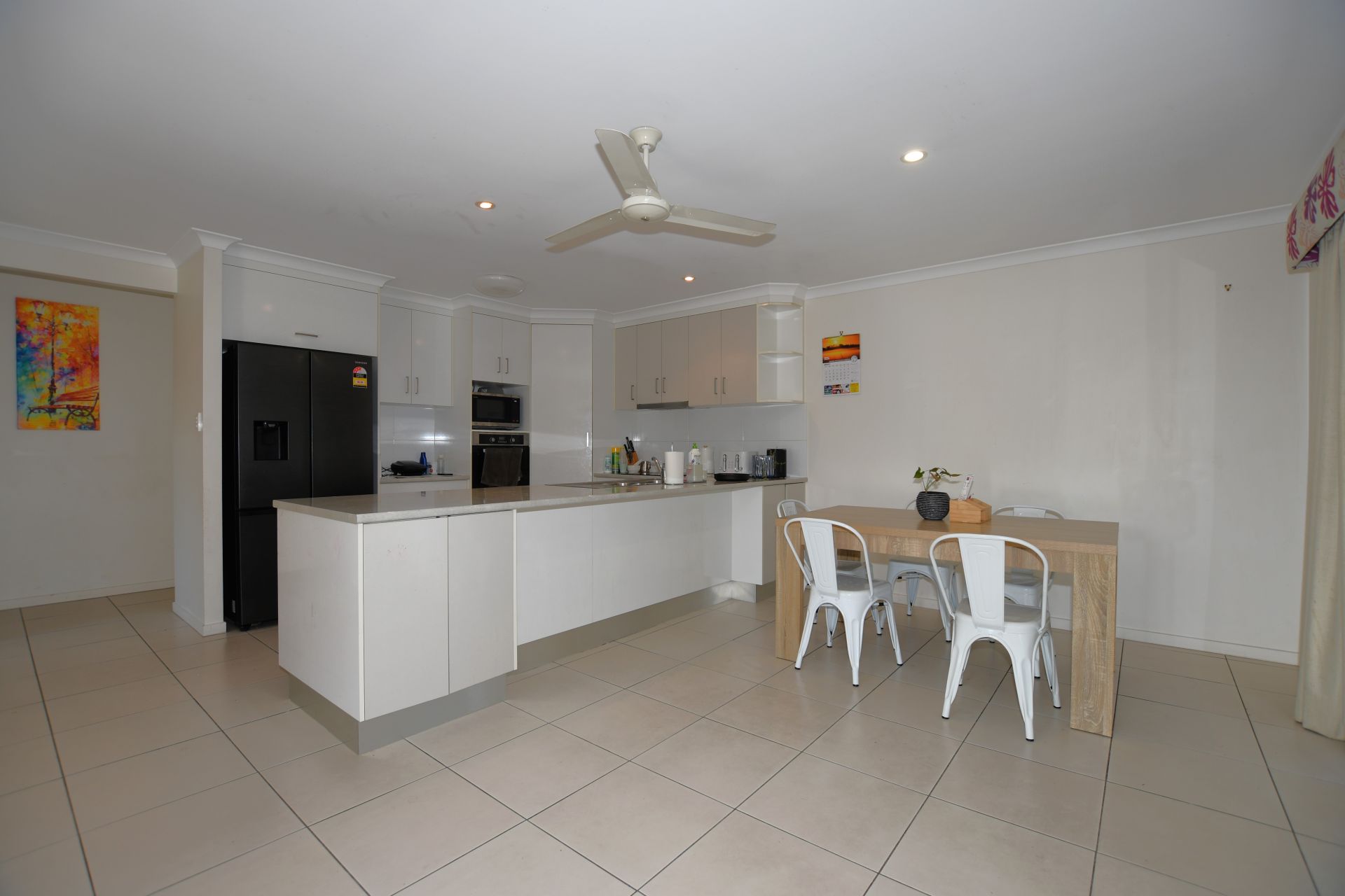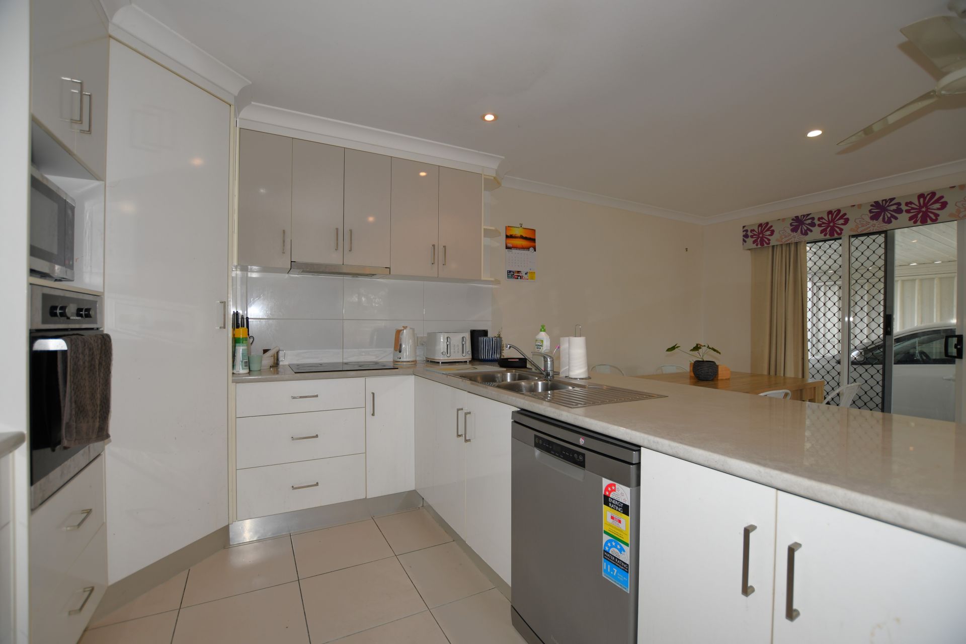 • A well-appointed kitchen includes an electric cooking stove/oven, a large amount of cupboards and shelving and a breakfast bar