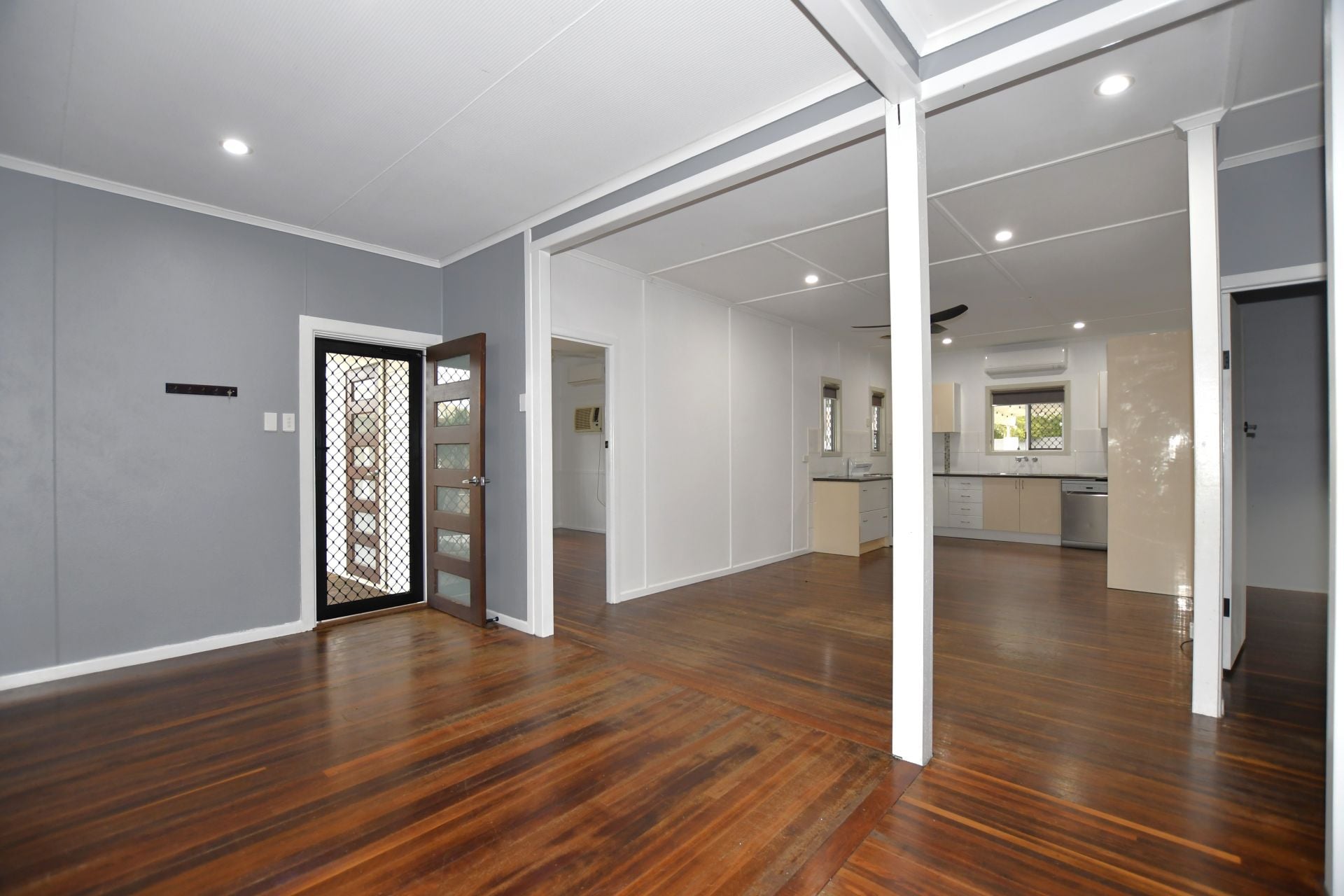 • Airconditioning and ceiling fans located throughout