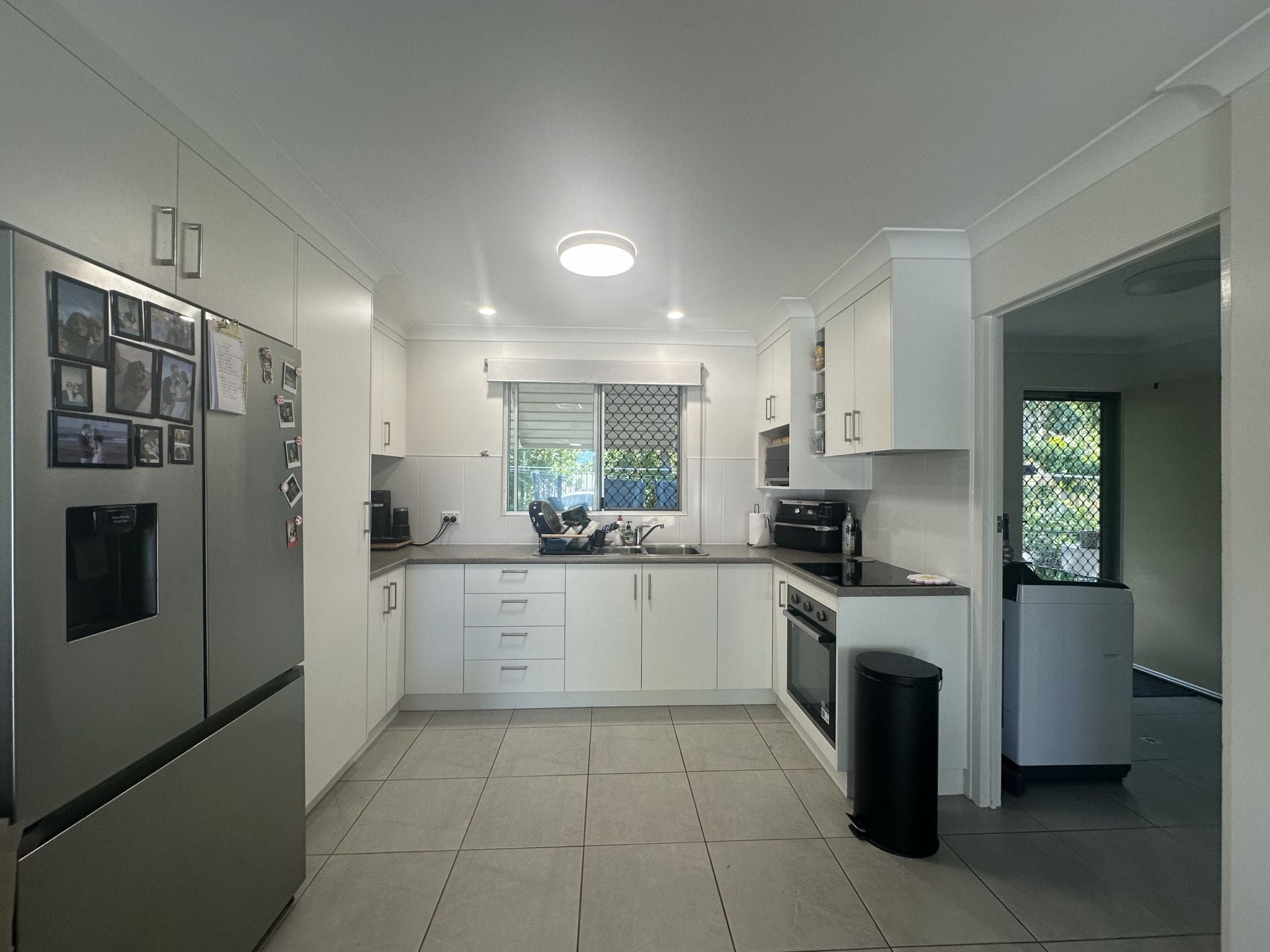 • A well-appointed kitchen includes an electric cooking, a large amount of cupboards and shelving