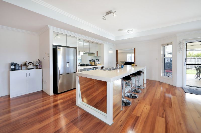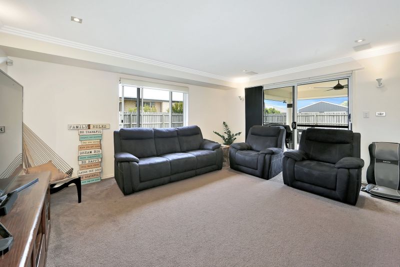 From the moment you open the front door you will appreciate the very generous size of the open plan main living area which includes the kitchen, dining and family room. From here the property just keeps growing, with the choice of catching a movie in the purpose built media room or relaxing, catching the breeze in the fabulous outdoor area. There are 4 large bedrooms, 3 with built-in robes and the oversized main boasting an ensuite with dual bowl vanity and walk-in robe. Add the spacious laundry with folding bench space and plenty of storage, and a double remote lock-up garage for easy access in all types of weather to complete this fabulous package.