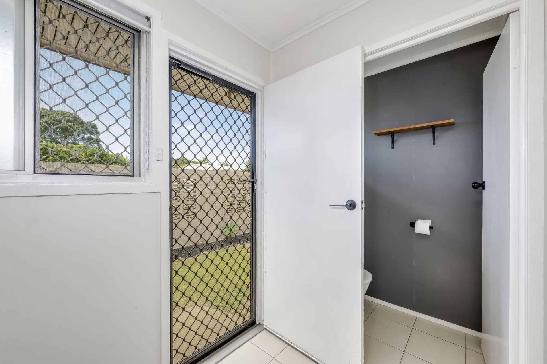 Two generously sized bedrooms with built-in wardrobes (half-mirrored), ceiling fans and floating timber shelves for your photos. The second bedroom offers a private view of the courtyard, perfect for a queen-sized ensemble.
