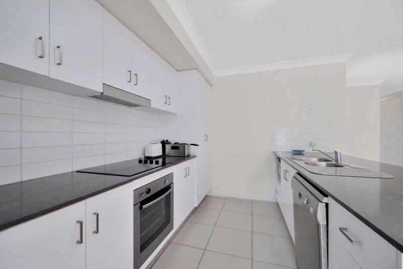 The spacious open plan living area combines a fantastic sized dining and lounge with split system air-conditioning, perfect for entertaining guests or spending quality time with the family. The well-equipped kitchen is a true chef's paradise, featuring stainless steel appliances including a dishwasher and electric cooking, as well as plenty of cupboard space and a family breakfast bar.