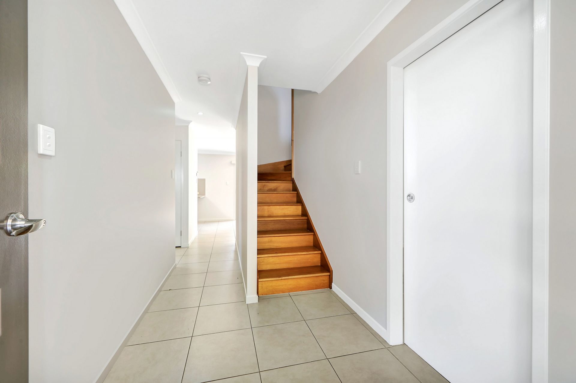 You're welcomed into a practical and comfortable layout designed for easy living. A well-sized bedroom sits conveniently located adjacent to the main bathroom. The modern kitchen opens seamlessly into the dining and family area, creating a central hub of the home, all kept comfortable with air-conditioning. There's also secure internal access from the remote garage, along with a handy under-stairs storage area that adds to the functionality.