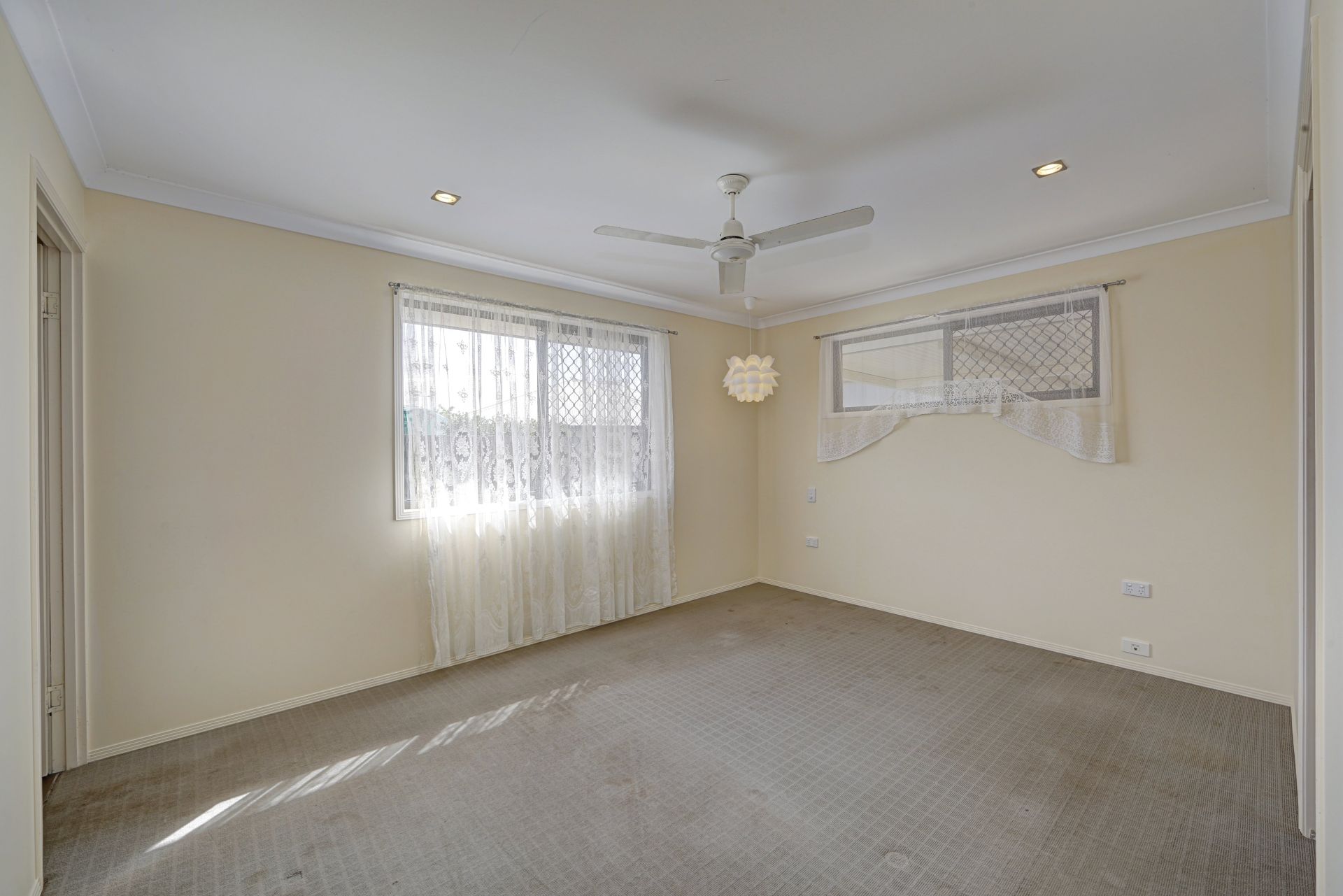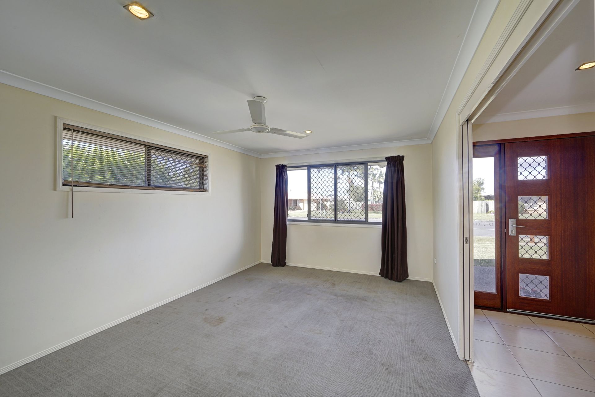 There are security screens and ceiling fans through out as well as 14 solar panels to help you with the rising energy prices.