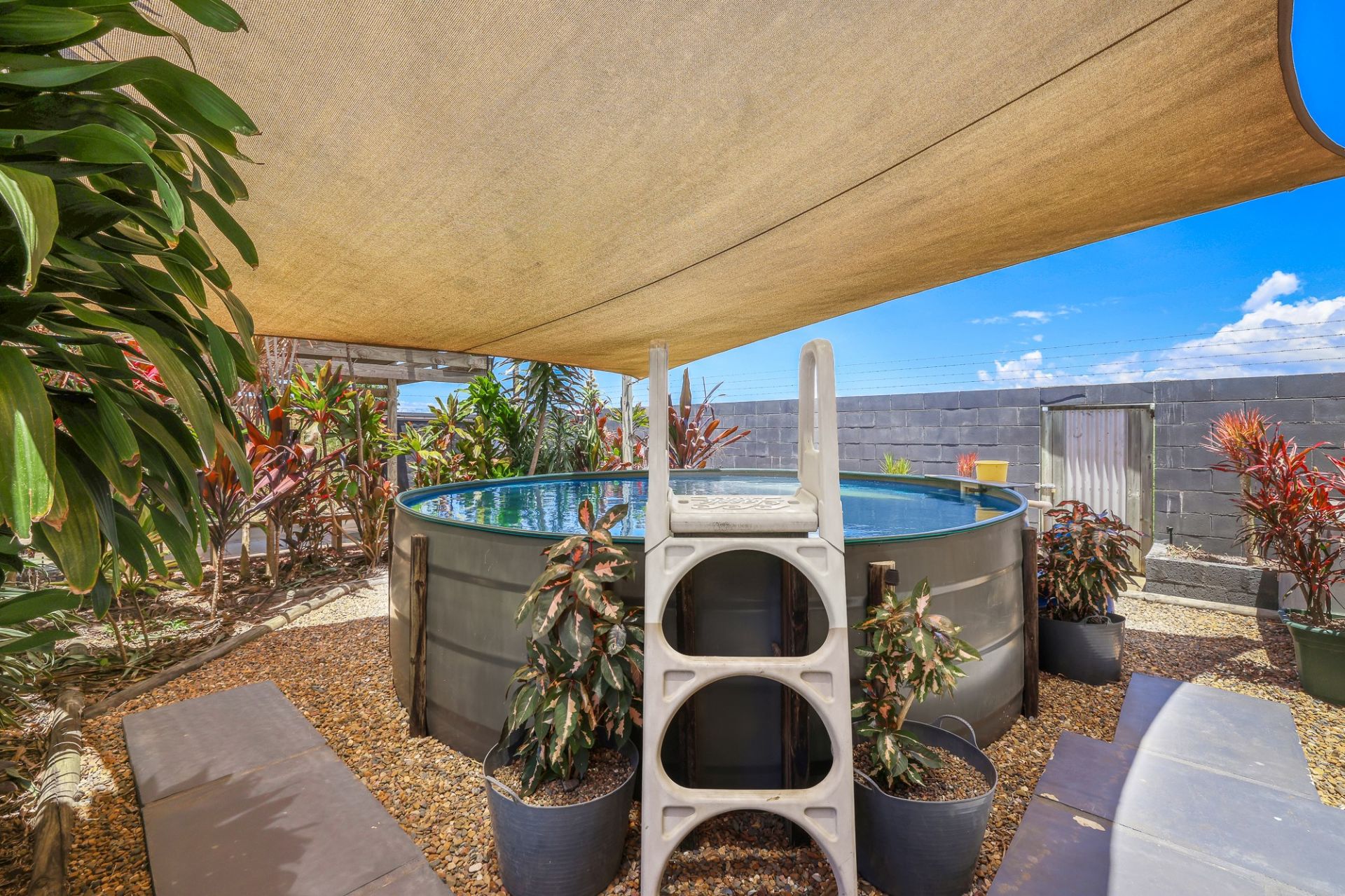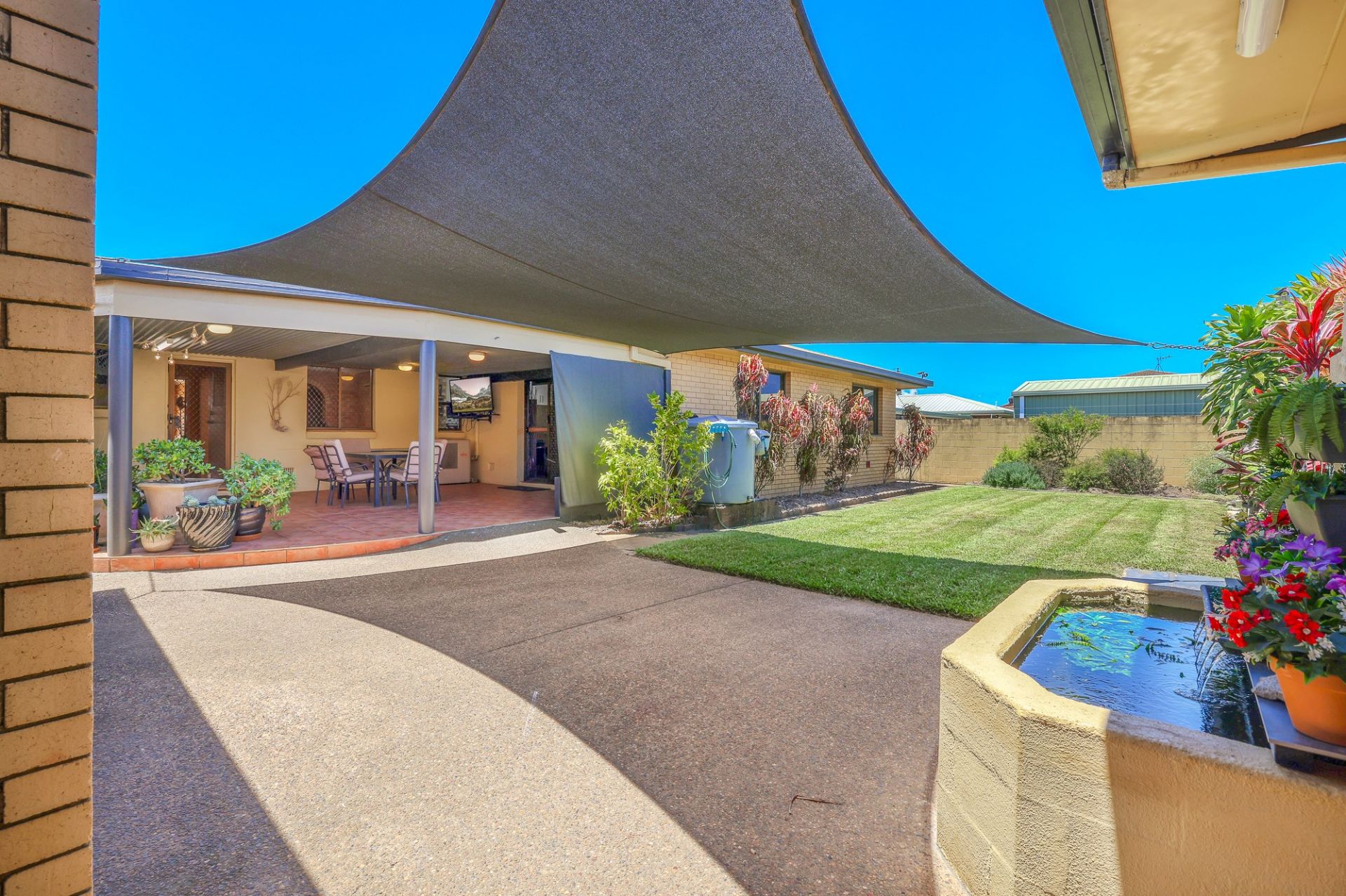 • Fish pond water feature off the shed fitted with automatic water pump