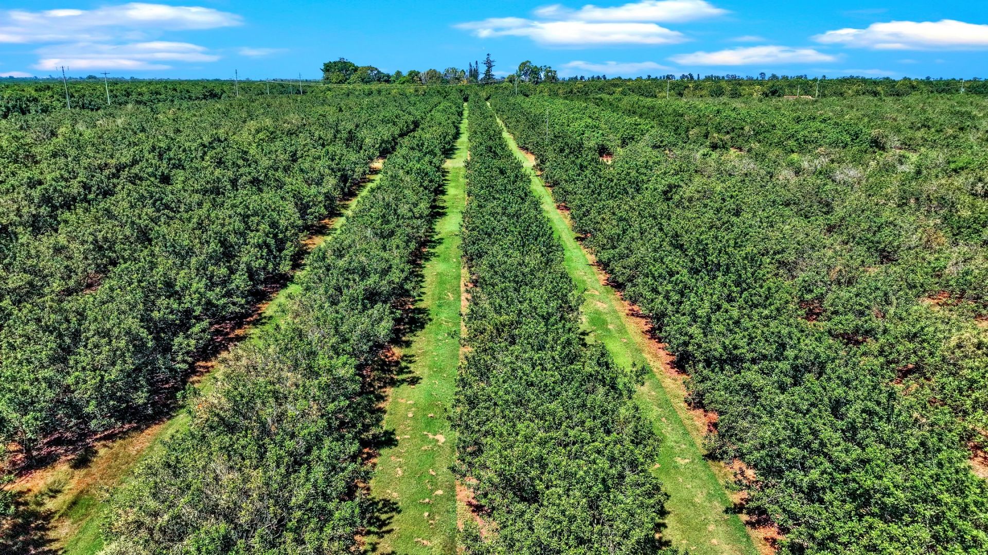 Fit-for-purpose operational infrastructure includes a residence, machinery sheds, pump sheds, Grundfos variable speed, multi-stage pump set (4 pumps), Filtration - 3 x Netafim sand filter tanks, Mainline - 100% HDPE (always remains pressurised), Sprinklers - 70/hr Netafim sprinkler (Blocks 1a, 2 and 3), Drip - Netafim online dripper emitters (2 x 6l/hr drippers per tree), Controller - MAIT system and Sand filters (auto flushing at regular interval).